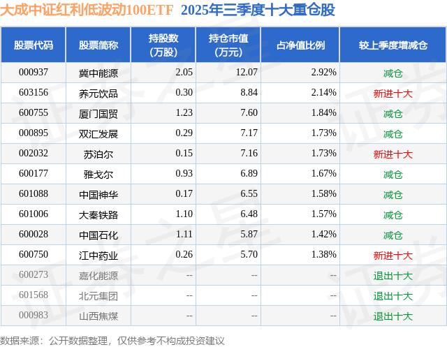 本站音信,日前大成中证红利低波动100ETF基金公布三季报,2025年三季度最新限制0.04亿元,季度净值涨幅为1.83%。